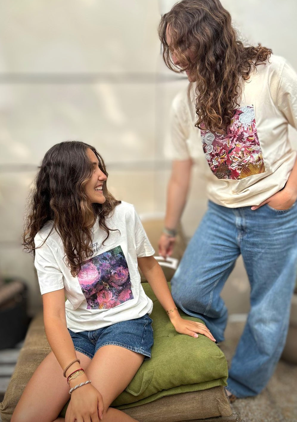 Master Pièce puise dans l’univers pictural d’Annabel, pour donner vie à des pièces uniques, où la peinture s’invite au cœur du textile. Chaque modèle contient un extrait d’œuvre originale, capturant une émotion brute, une énergie florale, un instant suspendu.
