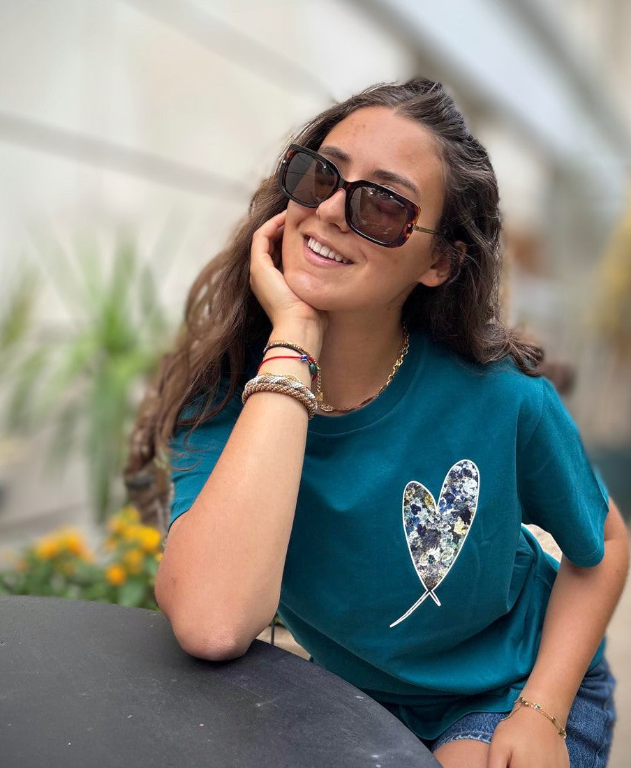 Ce tee-shirt devient toile d’expression grâce à son cœur graphique, contenant un véritable extrait d’une œuvre originale d’Annabel. Chaque pièce raconte une émotion, une fleur, une impulsion.