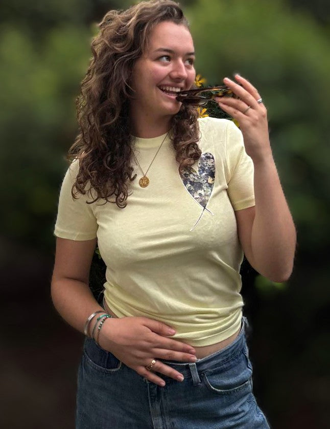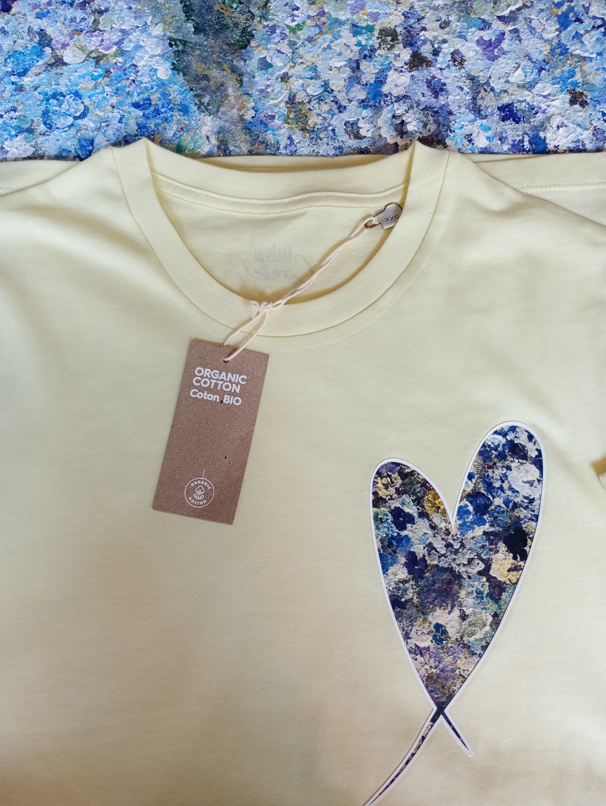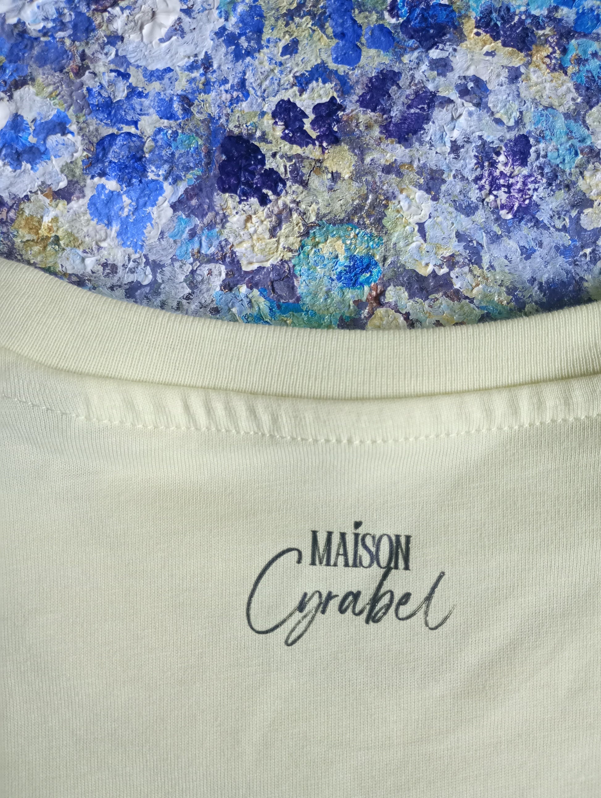 Ce tee-shirt devient toile d’expression grâce à son cœur graphique, contenant un véritable extrait d’une œuvre originale d’Annabel. Chaque pièce raconte une émotion, une fleur, une impulsion.