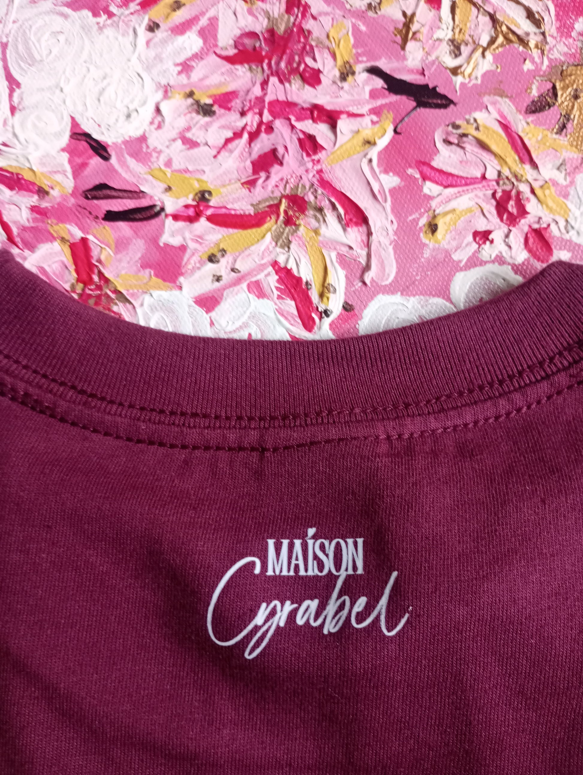 Ce tee-shirt Dark Cherry, d’une profondeur subtile, vous enveloppe telle une brume douce en fin de journée. Son cœur, délicatement orné de touches florales abstraites, évoque une nature silencieuse et presque onirique — un hommage à l’esprit Frenchies et à la sensibilité artistique unique de Maison Cyrabel.
